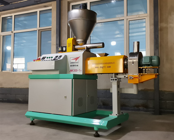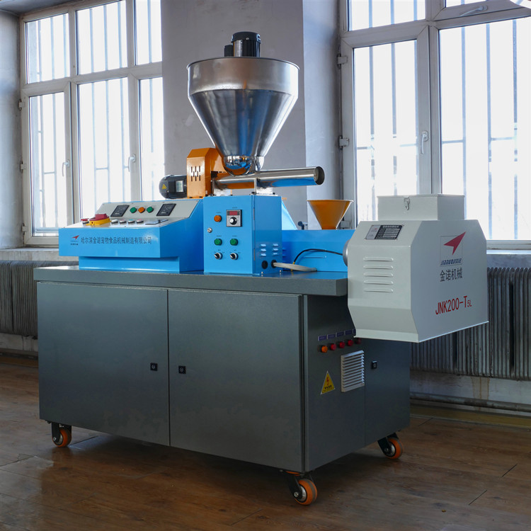 JNK200-T5L鮮肉狗糧設備特點1。狗糧加工設備200-T5L機型,標配球形喂料系統,變頻控制,喂料,流量穩定不結塊;2.德國品牌變頻器控制切刀轉速,誤差0.01赫茲,顆粒均勻穩定;3。200-T5L狗糧顆粒機匹配智能恒溫加熱裝置,溫度可根據狗糧原材料的比例、細度、油脂含量、蛋白含量、膨化度及顆粒容重的要求設定,智能溫控、恒溫保證;4。200-T5L生產狗糧時,原料中可以加入新鮮的三文魚肉、雞胸肉、鴨肉、牛肉、胡蘿卜、西紅柿、芹菜等新鮮蔬菜;5。200-T5L狗糧設備可以出一顆顆粒、二顆顆粒、三顆顆粒、六顆較小的寵物食品顆粒或6顆小顆粒(直徑在5-5.5毫米之間)。
